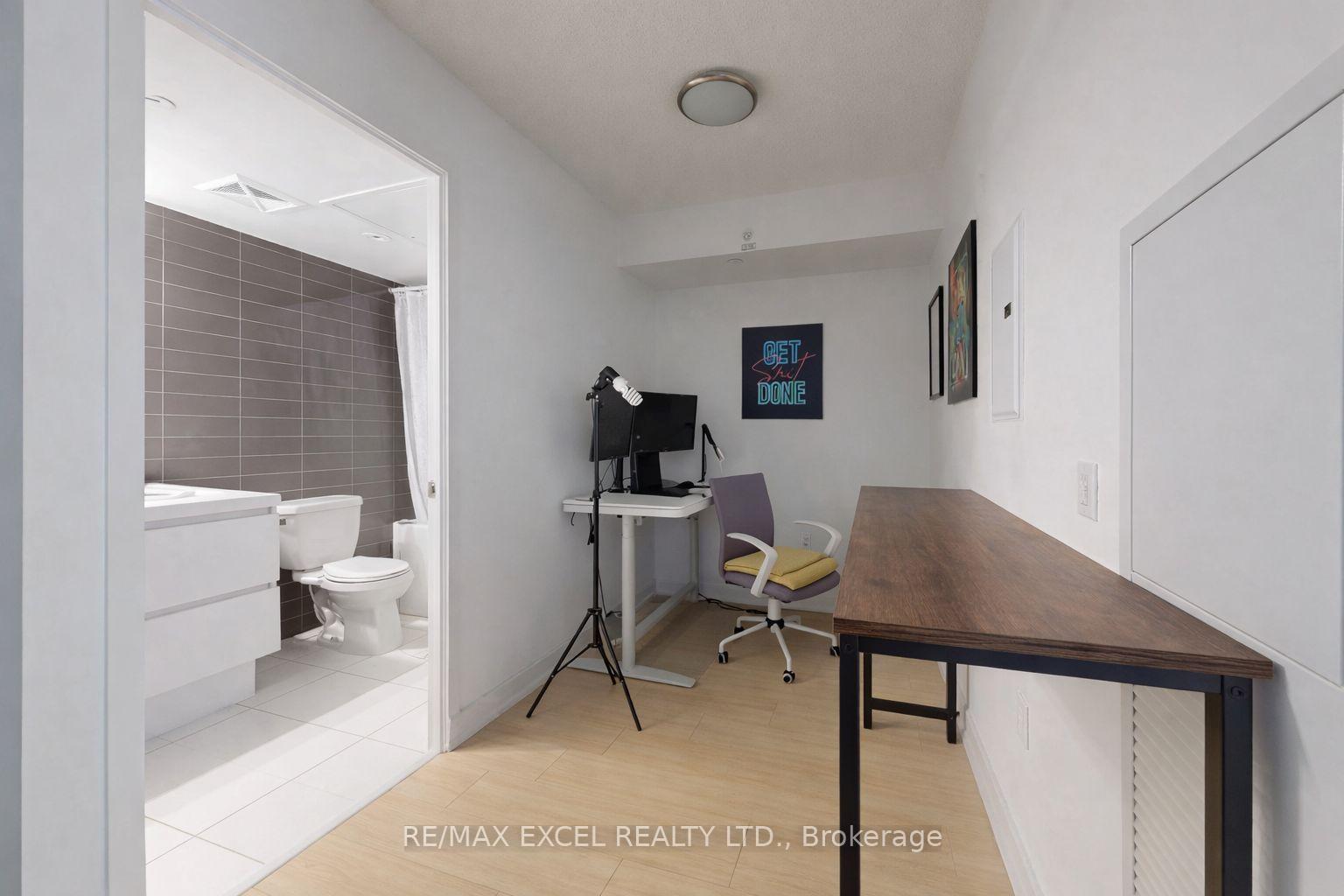 Spotless 700Sq.Ft + 38 Sq.Ft Balcony!! 1 Bedroom + Den (can be converted to 2 bedrooms), rarely offered with 1 parking & 1 locker. Unobstructed east-facing views overlooking Canoe Park and the lake, with stunning skyline and CN Tower views. Floor-to-ceiling windows provide abundant natural light. Modern kitchen with stone countertops, subway tile backsplash, and stainless steel appliances. Functional layout with separate dining area and versatile den ideal for office or second bedroom. Exceptional amenities include indoor pool, gym, yoga studio, basketball court, party room, theatre, guest suites, BBQ area, 24-hour concierge and security.