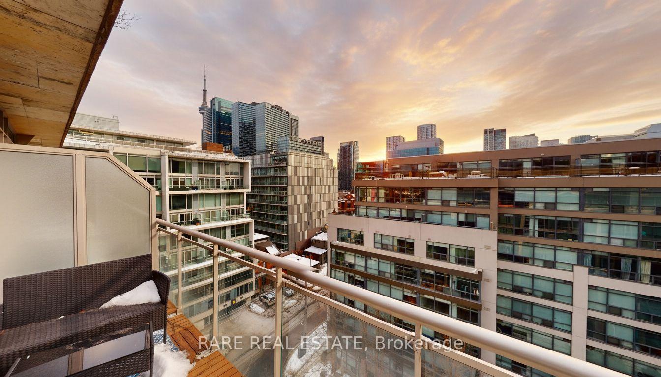 Welcome to this charming boutique loft in the heart of King West, a space designed for effortless city living with timeless character. Freshly painted and filled with warmth, this inviting suite features soaring ceilings, oversized windows, custom built-in closet inserts, and thoughtful details throughout. A locker is included, adding extra convenience and storage. Step outside onto your huge private terrace with BBQ hookup, overlooking the energy of the city, perfect for morning coffee, golden sunsets, and entertaining with friends. Just beyond your door, you're surrounded by the city's best: boutique shopping, acclaimed restaurants, cozy cafés, vibrant nightlife, and the TTC just steps away. This is a neighbourhood made for romanticizing your life, vibrant, connected, and endlessly inspiring!
